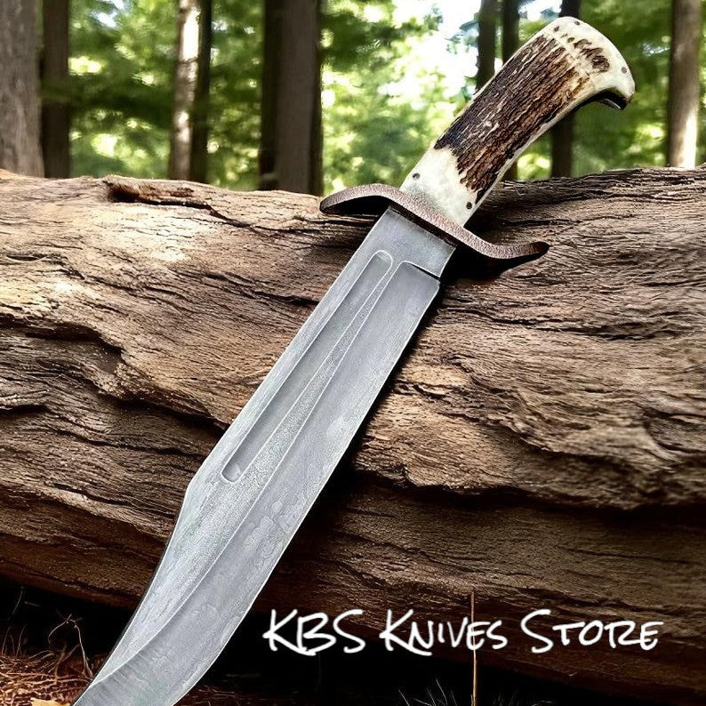 Professional Survival Bowie Knife - 11" D2 Steel with Antler Horn Handle & Copper Guard