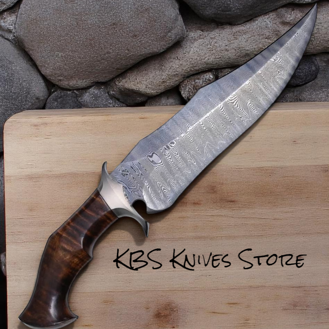 Premium Hunting Bowie Knife - 10" Damascus Steel with Rosewood Handle & Steel Guard