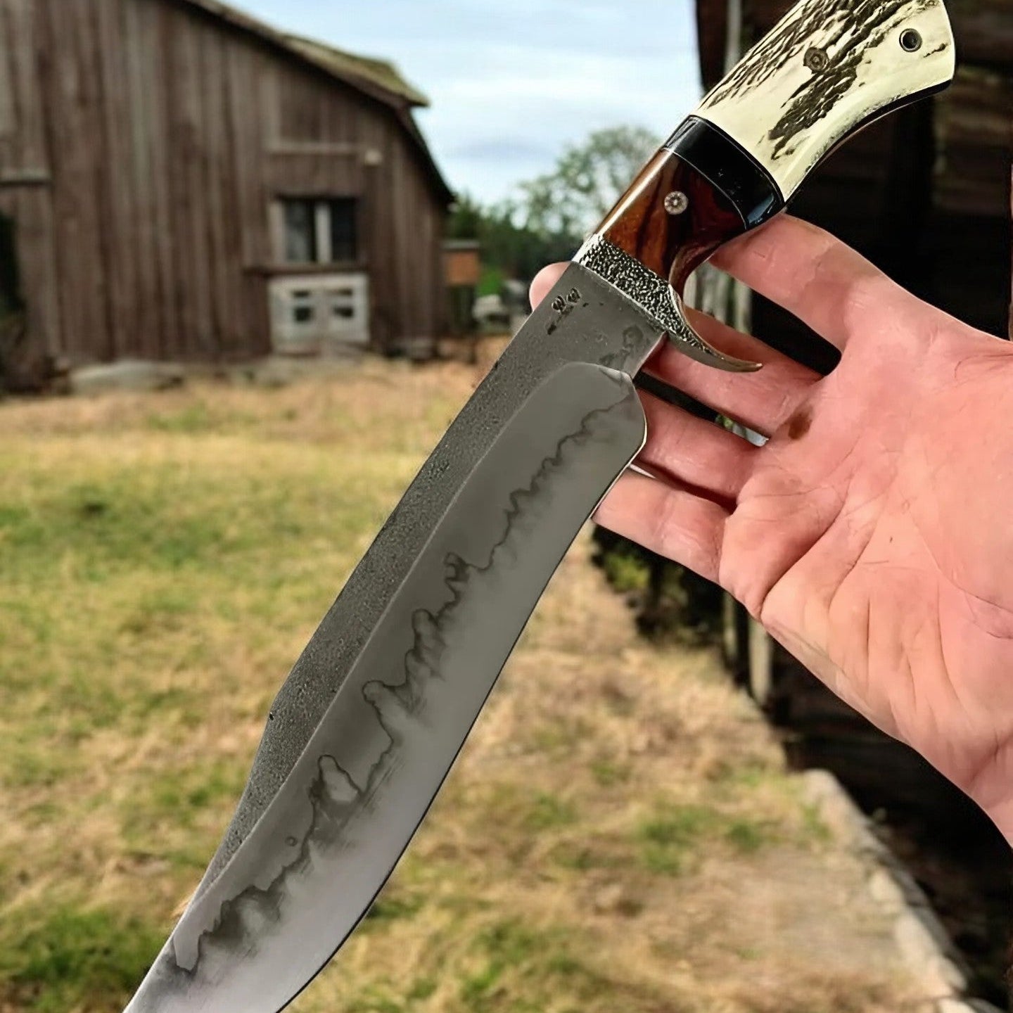 Fixed Blade Custom Bowie Knife - High Carbon Steel & Antler Handle