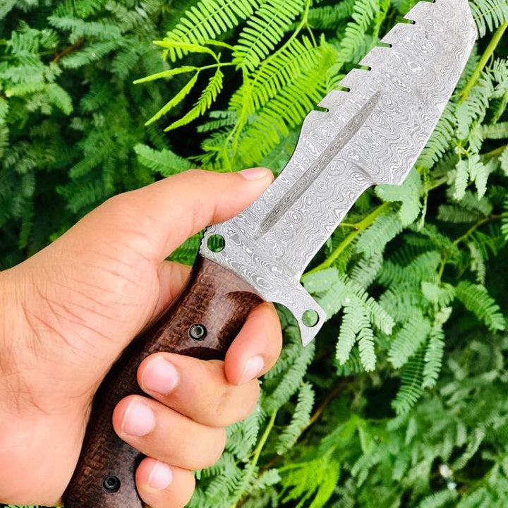 10-Inch Tracker Knife for Sale 10-Inch - Full Tang Damascus Steel Blade, Micarta G10 Handle, Horizontal Leather Sheath - KBS Knives Store