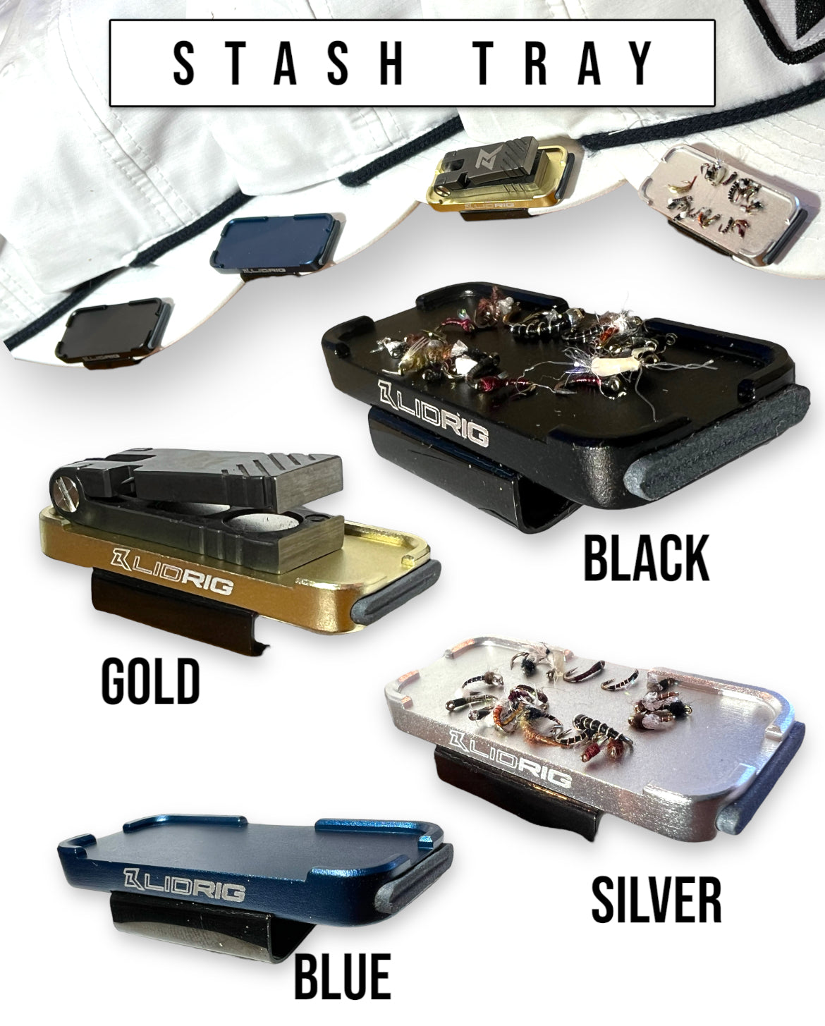 The Stash Tray is a revolutionary new way to hold and store your Lid Rig, favorite flies, tools, and more right on the brim of your hat for quick access.