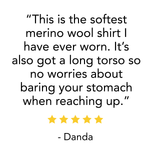 When the warmth of summer starts to peek out from winter, you’ll be glad to reach for this amazing Merino t shirt! Use it as a base layer under your work shirt, or wear it all by itself during your next summer summit. Naturally soft, naturally anti-odor, and versatile, you'll fall in love with its everyday comfort. This shirt is machine wash & dry too - so you don't have to worry about shrinkage.