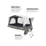 Breathable polycotton fabric and all-round mesh windows to reduce condensation and provide comfort cool and warm weather.
