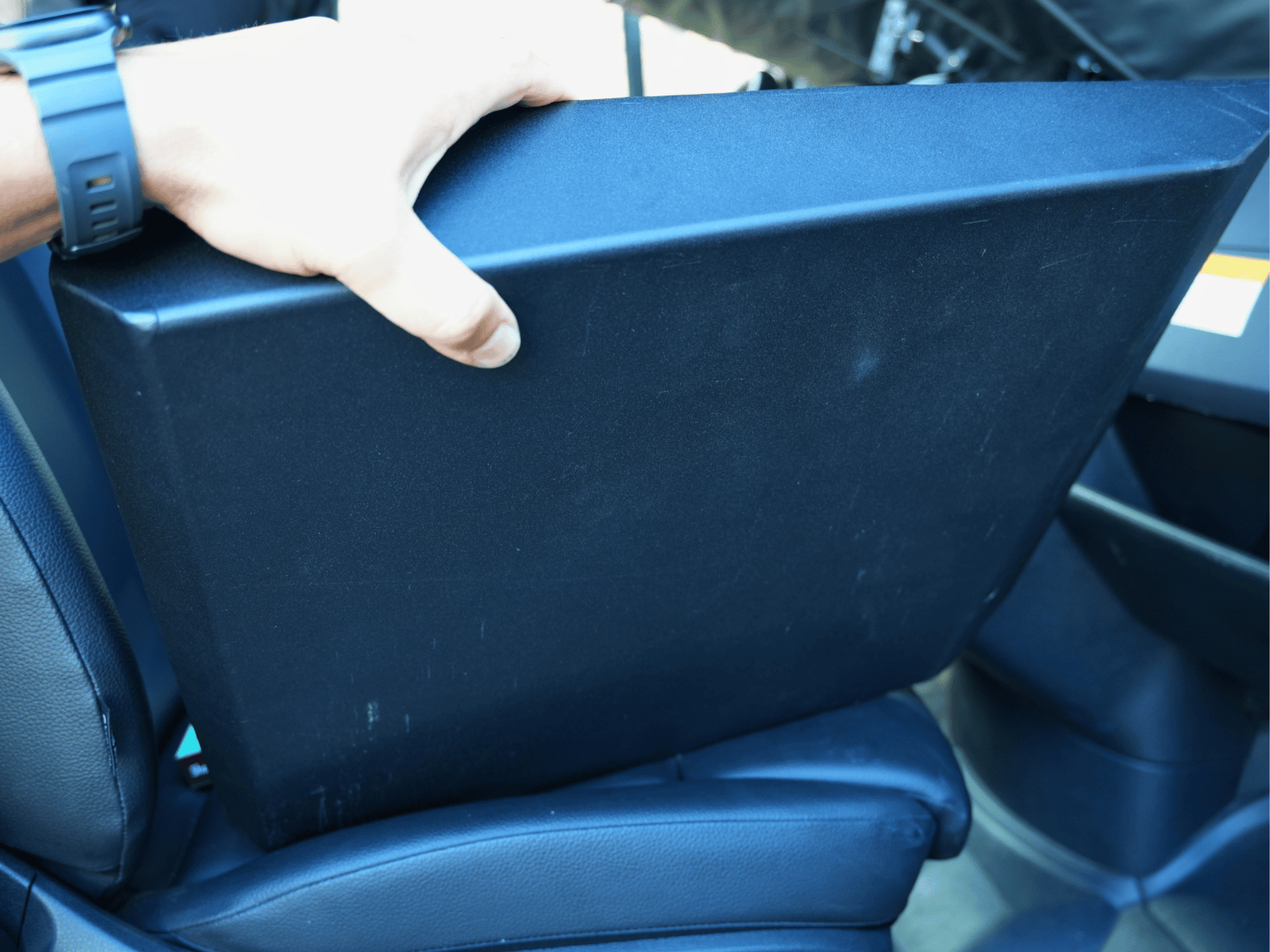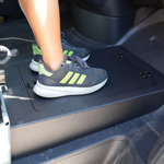 Elevate your Sprinter NCV3 or VS30 van experience with our in-house designed raised foot platform. Made entirely from lightweight, powder-coated aluminum, it ensures passenger comfort by eliminating dangling feet while seated. Featuring a convenient storage compartment underneath, it seamlessly combines functionality and style. The platform attaches securely to the seat base with heavy-duty magnets, providing a stable and reliable fit for every journey.