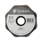 5X, which is equivalent to roughly 5lb (2.5kg) in test strength is the recommended rating of tippet for tenkara. This allows you to break off the tippet if caught in deep snags or high trees, with a lower chance of breaking the rod. We currently only carry 5X tippet, which is what we use. 4X tippet can be used if specifically targeting larger fish. We do not recommend using tippet stronger than 4x (roughly 6lbs /3KG) as anything stronger is very difficult to break off with the rod if needed. And, due to the great presentation tenkara allows, we do not believe thinner tippet (<5x) is necessary.
