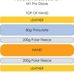 The M1 PRO shares its DNA with the original M1, but with an all-leather construction and additional insulation. These two small changes add up to big additional warmth by keeping the wind out and more Thinsulate® to keep the heat in. Depending on the conditions you operate in, the M1 PRO may be the perfect choice of glove where dexterity is still critical but additional warmth is demanded.