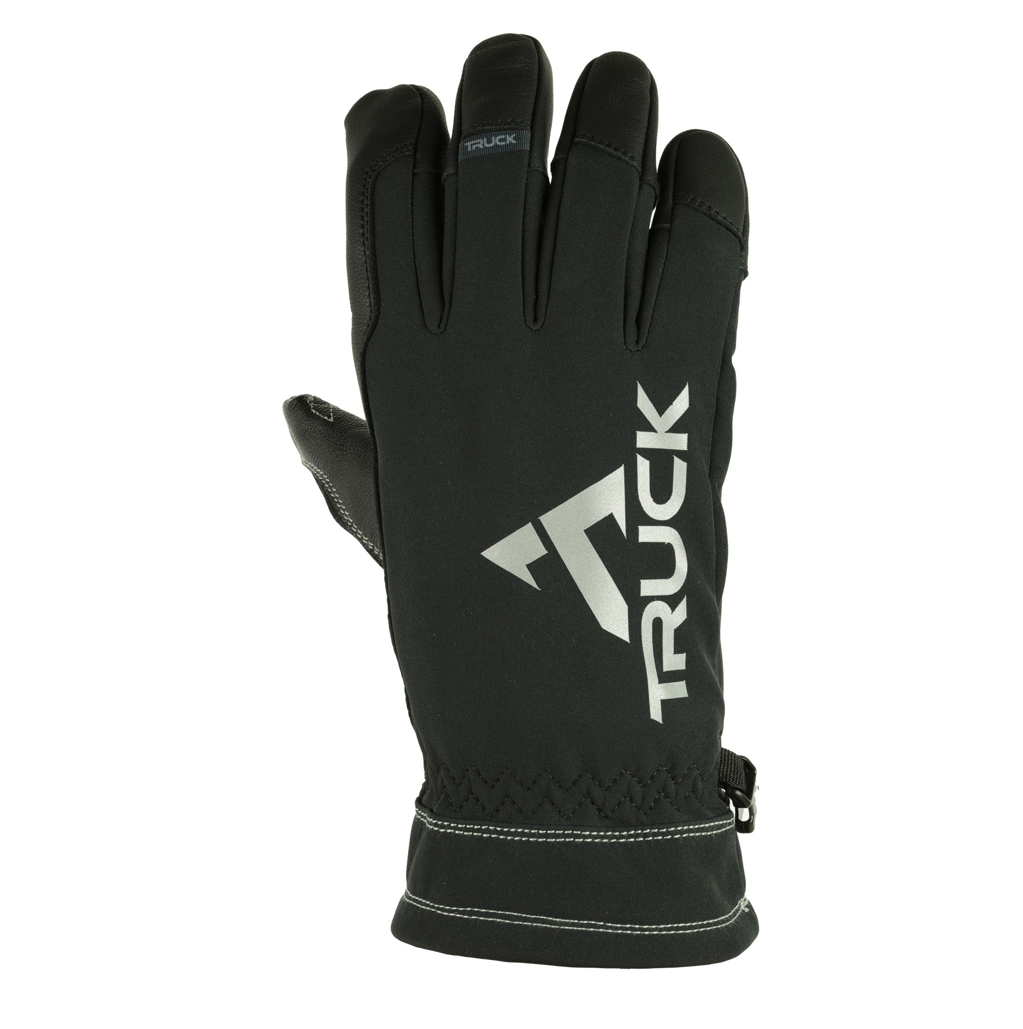 - Conductive leather and thread on thumb for touch screen compatibility