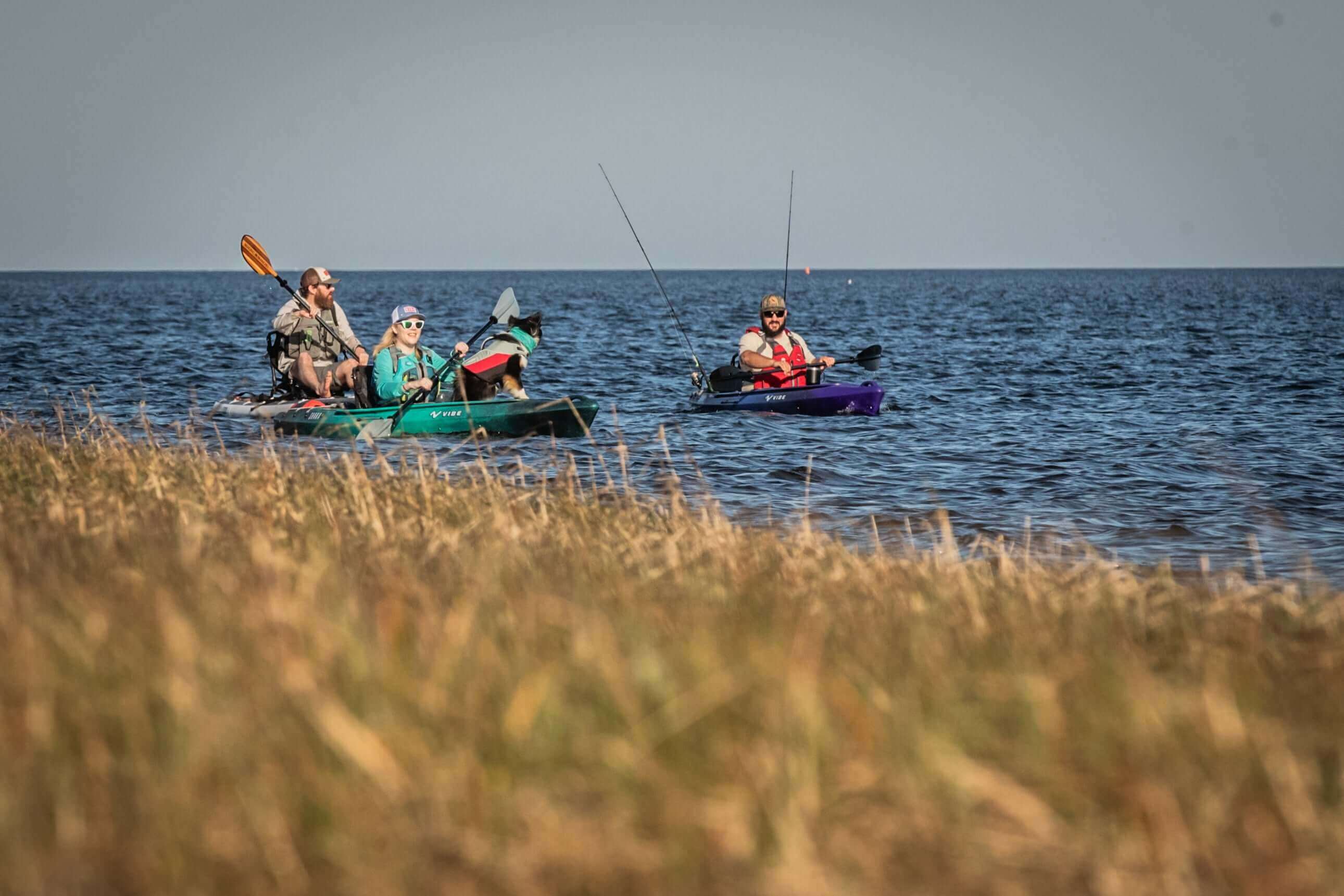 This sit-inside design keeps you drier in chop and more agile in tight water. It’s compact enough to maneuver solo but wide enough to feel solid when you cast, reach, or twist.
