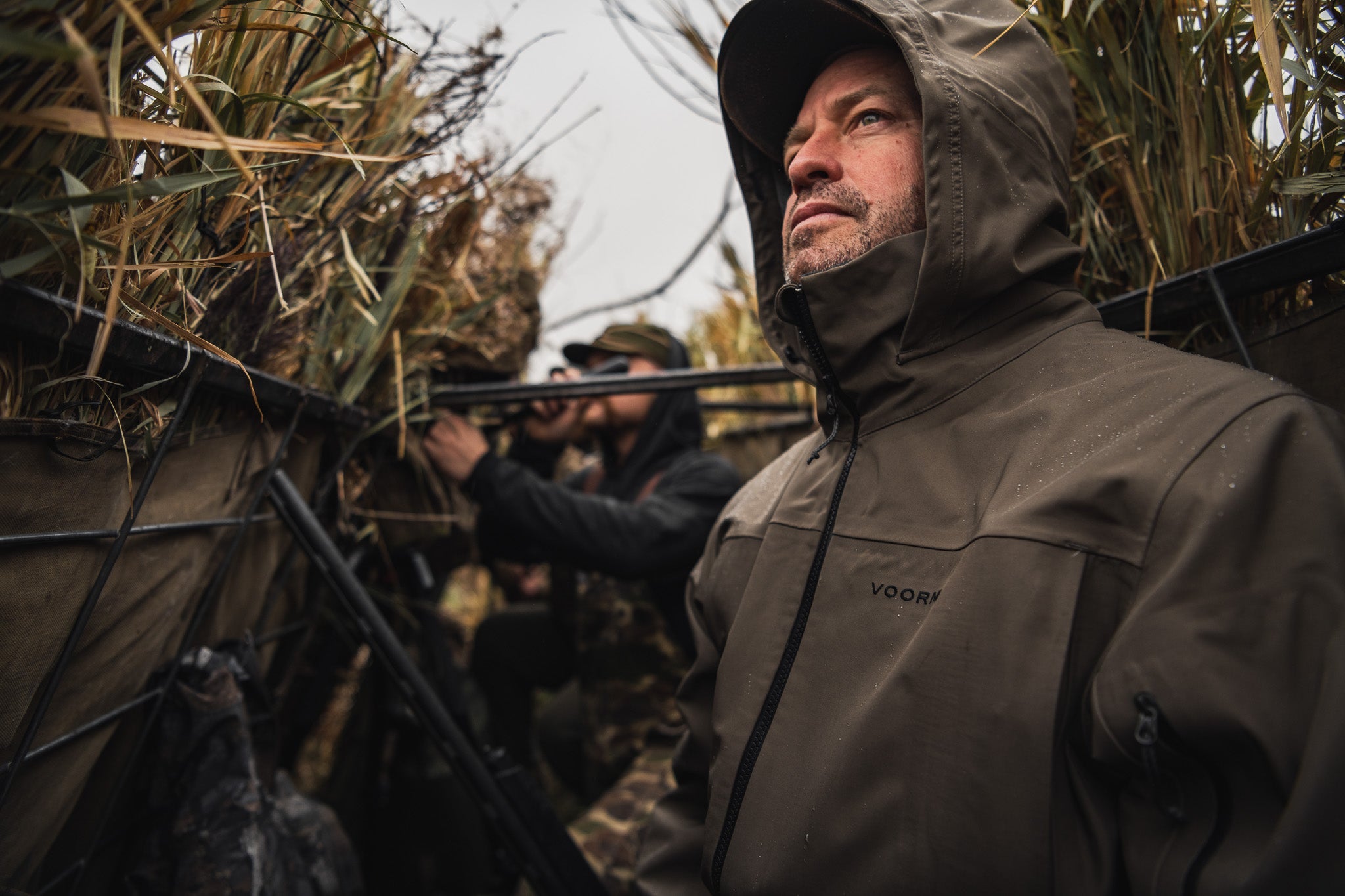 Conquer any condition with features like a large, helmet-compatible hood, two-way zipper for ventilation, adjustable cuffs and hem, and a heavy-duty YKK zipper. The V1 isn't just a rain jacket; it's your versatile outer layer. It shields you from wind and rain in summer and transitions seamlessly to your go-to cold-weather protection. A large back pocket stashes essentials, and pass-through pockets allow access to your Sportsman's Hoodie layers without compromising weather protection.
