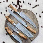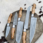 This beautiful set includes five different knives, each with a unique purpose in the kitchen. The knives are handcrafted from high-quality acid-washed stainless steel, which provides a beautiful and durable finish.