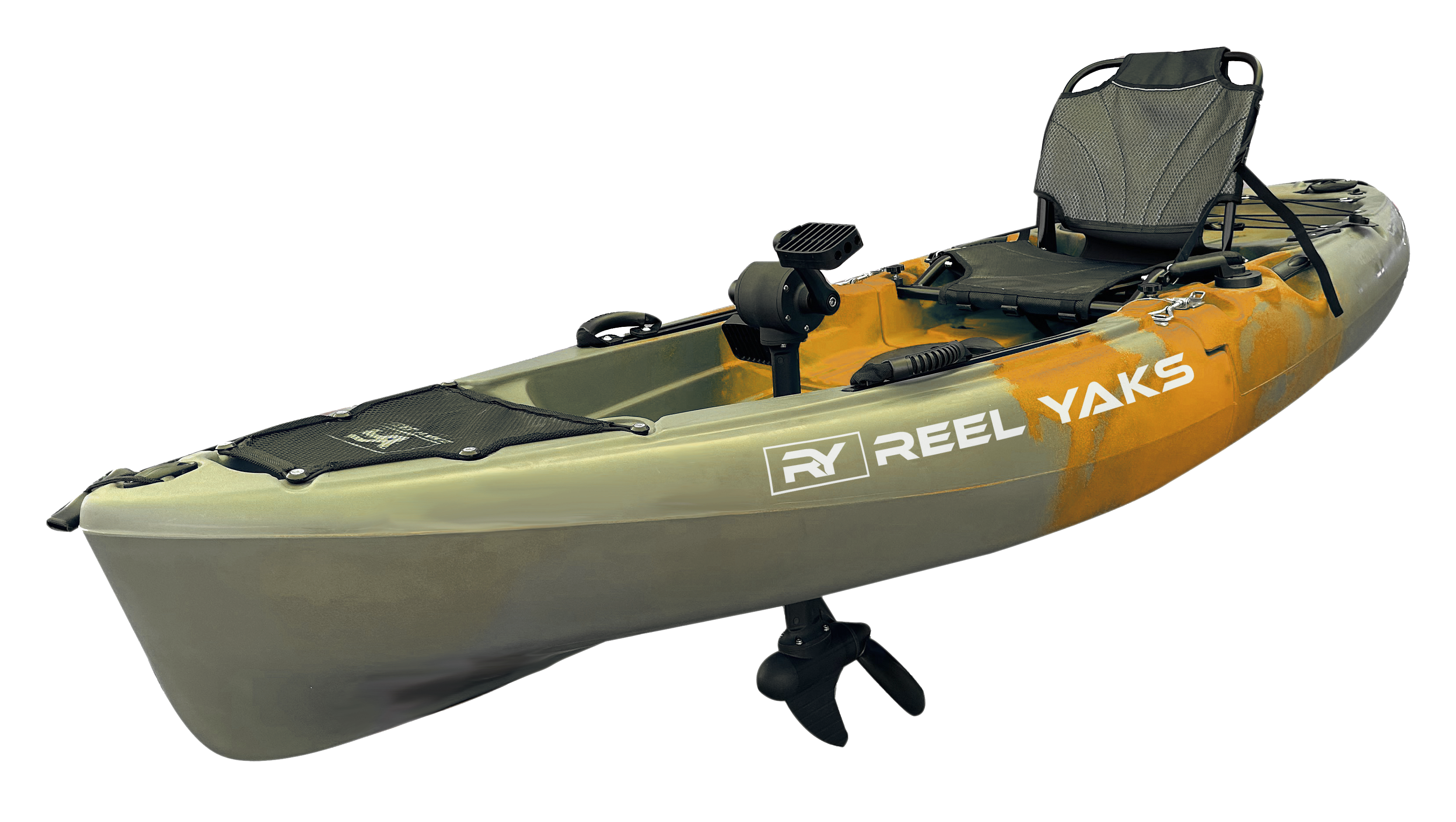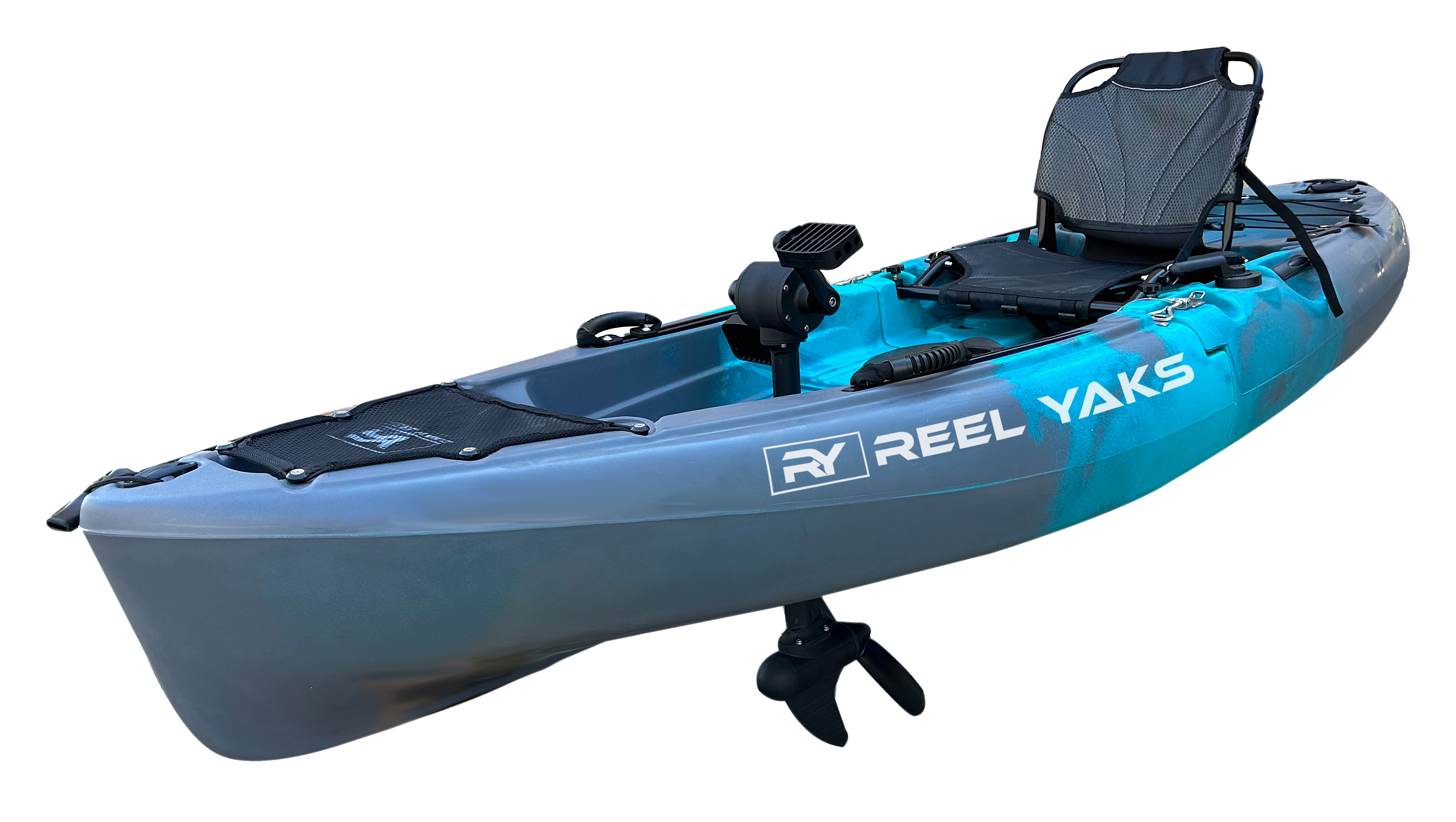 The Reel Yaks 9.5ft Raptor propeller drive kayak is the ideal platform to make your fishing sessions more enjoyable. It has a practical pedal drive system that allows you to accelerate through water very smoothly and quietly, without scaring the fish. Also, it is equipped with all the equipment you need for fishing, such as track rails for mounting fishing rods, swivel fishing rod holders, bait box holders, a storage hatch for extra gear, and a bottle holder. It has a hull weight of only 62lbs, each side is 31lbs and side carrying handles for more convenience and easy carrying. Also, it comes with a comfortable cushioned chair that makes those long hours of fishing more comfortable and a deep-blade rudder system to provide assistance when paddling conditions change. Durable and solid, the kayak provides increased stability, even when standing, which makes it a must-have for every fishing enthusiast