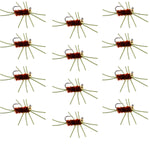 Barbless Pat's Rubber Legs Tungsten Bead Jigged Brown Euro Nymph - Set of 12 Flies Hook Size 10