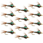 • Set of 12 - hand tied Flashback Pheasants Tail Nymph Fly Fishing Flies - Hook Size 10