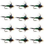 Bead Head Green Copper John Nymph Fly Fishing Flies - 1 Dozen Flies Hook Size 12