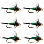 Bead Head Green Copper John Nymph Fly Fishing Flies - Set of 6 Flies Hook Size 12