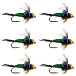 Bead Head Green Copper John Nymph Fly Fishing Flies - Set of 6 Flies Hook Size 14