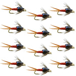 Bead Head Hot Orange Copper John Nymph - 1 Dozen Fly Fishing Flies - Hook Size 14