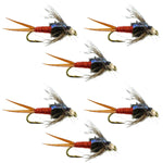 Bead Head Hot Orange Copper John Nymph - 6 Fly Fishing Flies - Hook Size 14