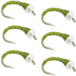 Bead Head Olive Zebra Midge Still Water Nymph Fly - 6 Flies Hook Size 16