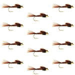 • Set of 12 - hand tied Pheasants Tail Nymph Fly Fishing Flies - Hook Size 10