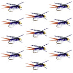 Pack of 12 hand tied Rubber Leg Bead Head Purple Batman Fly Fishing Flies - Hook Size 12