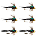 • Pack of 6 Zebra Copper John Nymph Flies - Hook Size 16