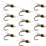 Each set includes 12 flies, all in hook size 16, making them perfect for a variety of fishing situations. The beadhead design adds extra weight, allowing for a more realistic and natural presentation in the water. These flies are deadly as a dropper fly, making them a must-have in any angler's collection.