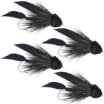 Black Muddler Minnow Fly Fishing Flies - Classic Streamers - Set of 4 Flies Hook Size 8