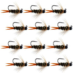 Black Tungsten Bead Prince Jig Tactical Czech Nymph Euro Nymphing Fly - 1 Dozen Flies Size 16