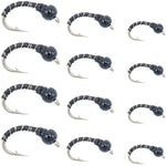 Black Zebra Midge Assortment - Black Bead Head - 1 Dozen - 4 Each of 3 Sizes 14, 16, 18 - Tailwater and Lake Fly Fishing Flies Assortment