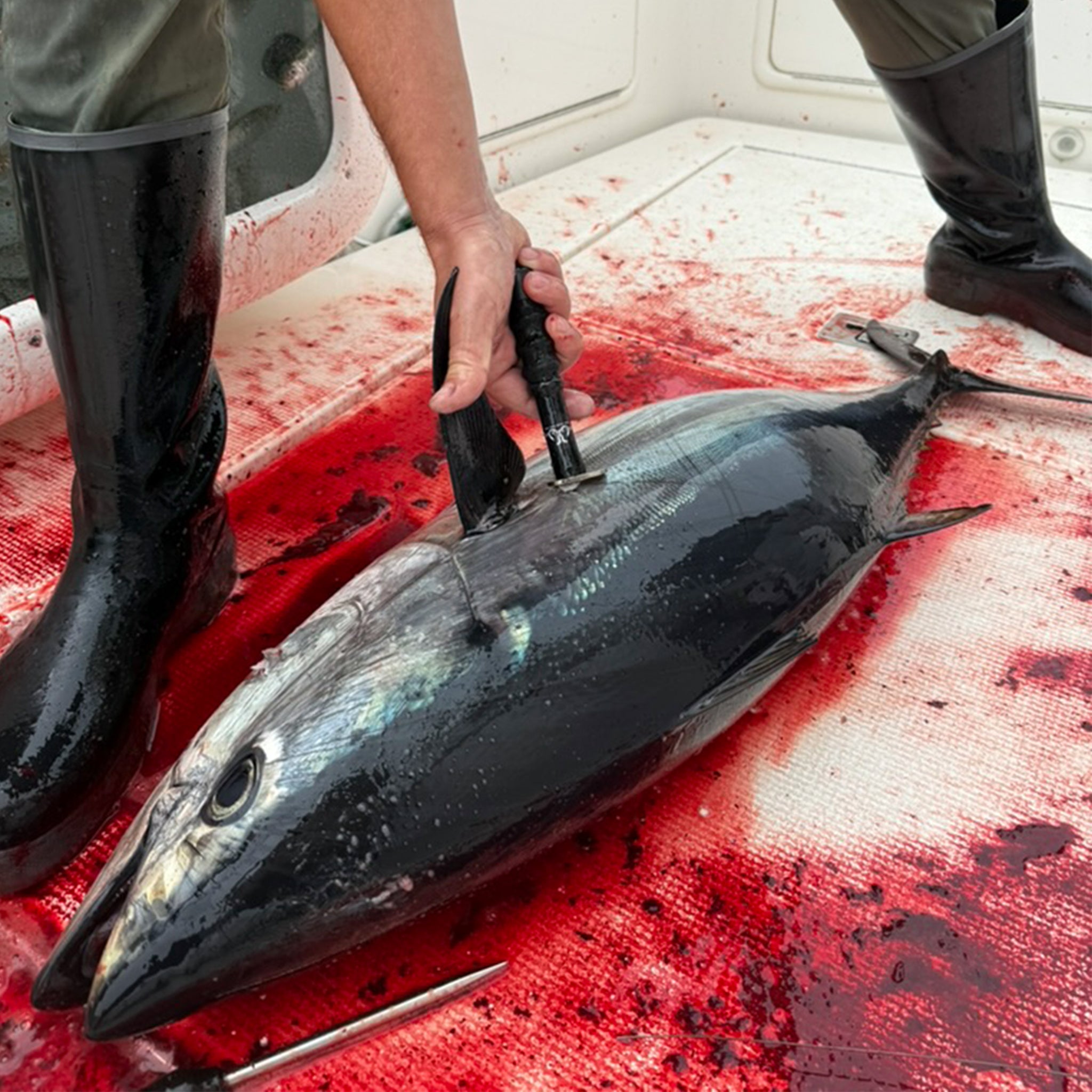 • Blood Knifes are used by fishermen for quickly bleeding tuna & other game fish. Insert the blood knife behind pectoral fin to sever the lateral artery cleanly without damaging meat. Done properly the blood will be pumped out of the fish quickly.