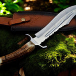The handle, made from genuine antler, delivers a rustic and natural feel, ensuring a firm grip while maintaining the aesthetic of a traditional frontier knife. The steel guards not only protect your hands during use but also add a refined touch to this rugged knife. Whether you're looking for a reliable outdoor tool or a striking piece for your collection, this Bowie Knife With Antler Handles is a blend of beauty and performance.