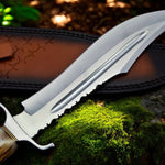 Embrace the spirit of classic craftsmanship with this Bowie Knife With Antler Handles, designed for outdoor enthusiasts and collectors alike. Measuring 14 inches overall with a 9-inch D2 steel blade, this knife offers superior sharpness, durability, and corrosion resistance. The blade features a blood groove to improve balance and reduce weight, making it perfect for heavy-duty tasks such as hunting, survival, or fieldwork.