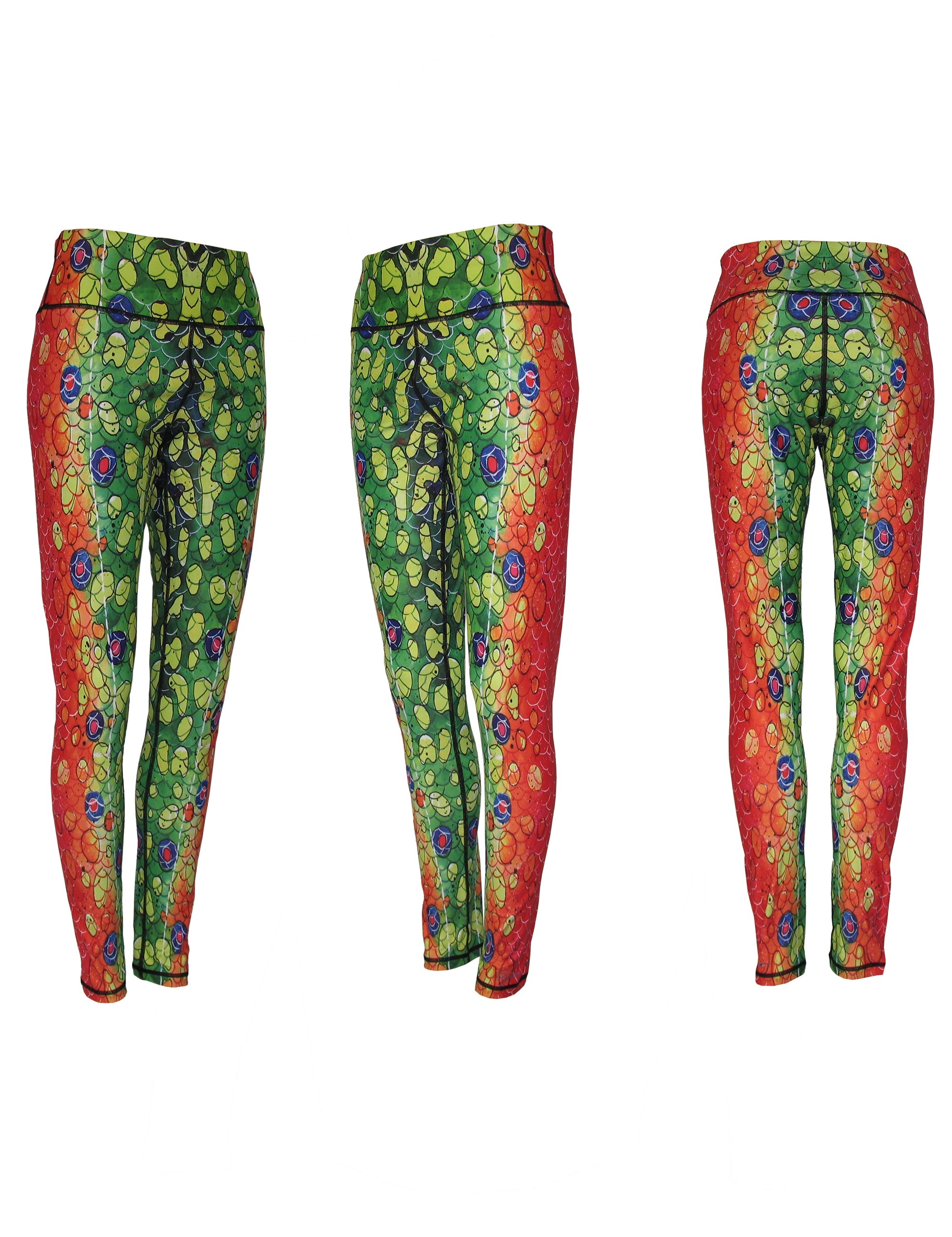 Ryan Keene's Brook Trout fish print pattern on a performance yoga-style legging.  We make the best women's fly fishing clothing available.  Wear as wader liners, long underwear, workout leggings, or to get trouty for a night on the town.  Our fly fishing apparel works well as hiking clothes on the trail or as a base layer for active sports.  Moisture wicking apparel with great sun protection.