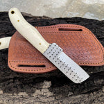 Bull Cutter Knife For Sale, 8.25-Inch Knife with Rasp Tool Steel Full Tang Blade, Bone Handle, and Leather Sheath