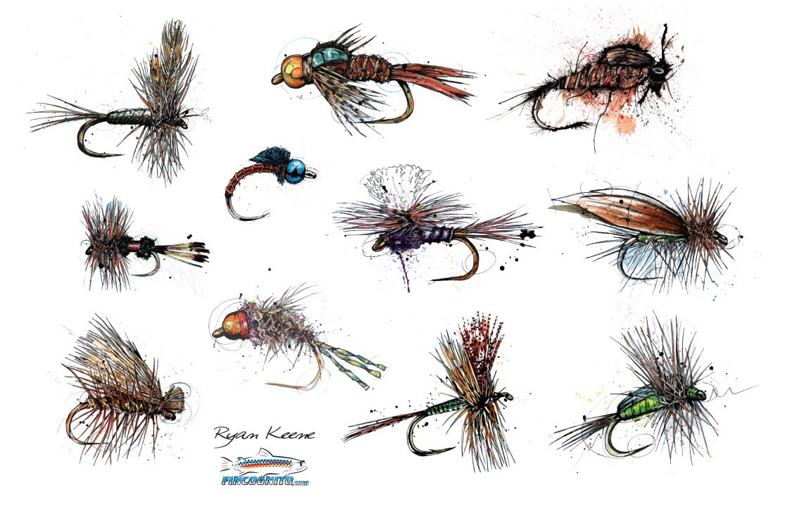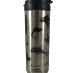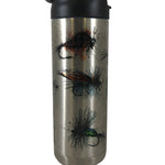 Our 20 oz. double walled bottle will keep your cold beverages icy cold and your hot beverages steaming for hours. Shipped with a flip top coffee lid and a screw off water bottle top, you’re set for the drive to the put-in or all day in the boat. Featuring stunning artwork from Ryan Keene, we present the great flies of trout fishing. Stainless Steel color.
