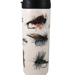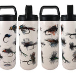 Our 20 oz. double walled bottle will keep your cold beverages icy cold and your hot beverages steaming for hours. Shipped with a flip top coffee lid and a screw off water bottle top, you’re set for the drive to the put-in or all day in the boat. Featuring stunning artwork from Ryan Keene, we present the great flies of trout fishing.
