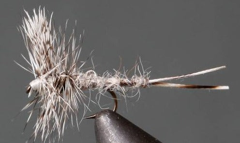 The Callibaetis – Thorax, this grey modification of a Mayfly Dry Fly. Single wing going up instead of side wings.