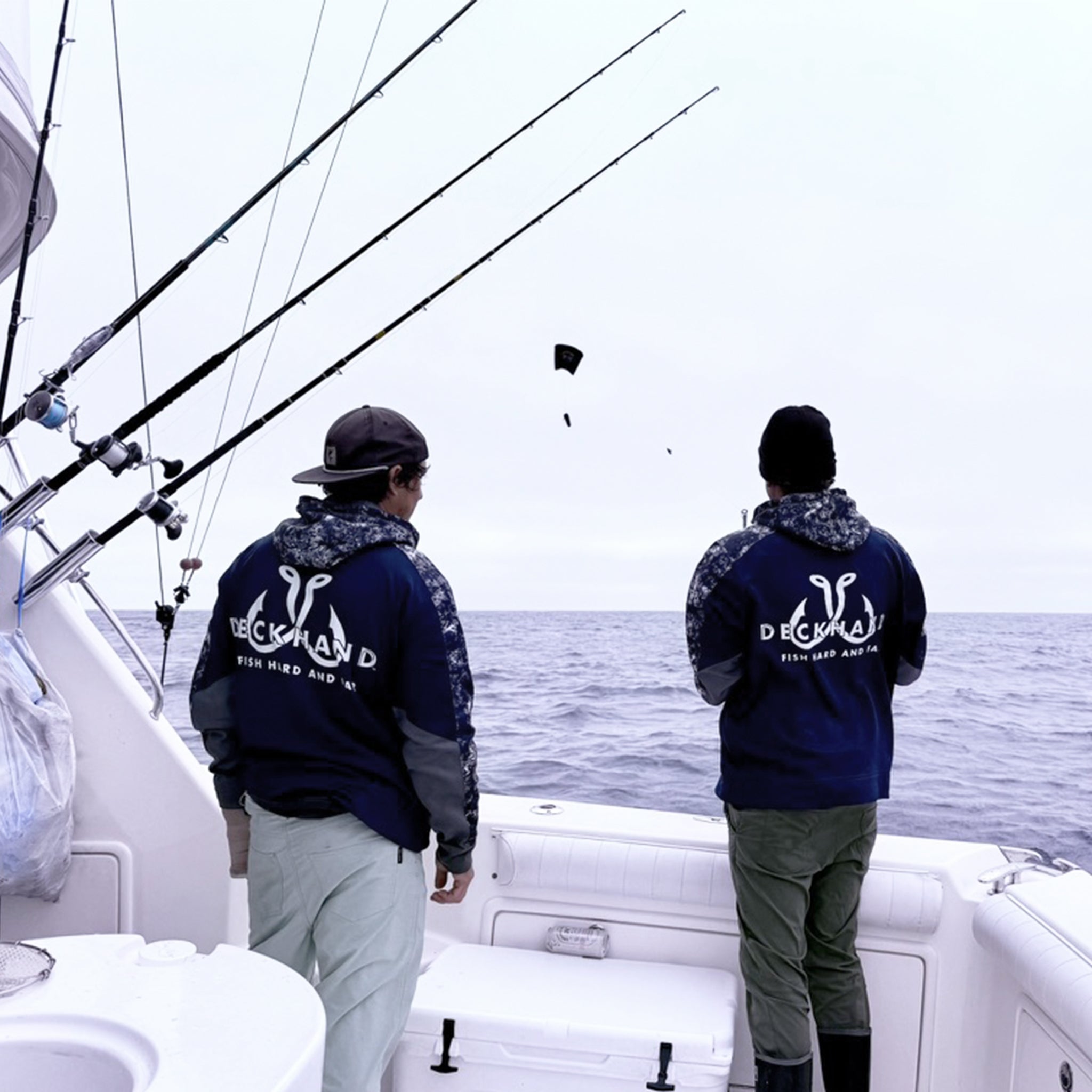 On or off the water, Navy & camo print is strategically placed along the sleeves and hood in this pullover that wicks moisture. This pullover will keep you warm without cooking you while fighting a big fish!