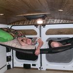Expand your campervan's living space and keep it organized with our Campervan Hammock. This versatile hammock provides a comfortable and convenient spot to relax or sleep, while also serving as a handy storage solution for coats, pillows, blankets, and other bulky items.