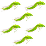 Chartreuse Rabbit Strip Deer Hair Diver 6 Flies Size 4 - Bass Fly Fishing Bug Wide Gape Bass Hooks With Weed Guard