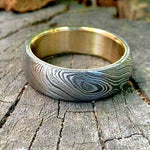 Custom Damascus Steel Anniversary Ring with Brass Inlay