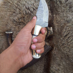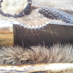 The Custom Damascus Steel Field Dressing Deer Skinny Knife combines traditional craftsmanship with modern performance, making it a must-have for hunters and outdoor enthusiasts. Measuring 7.25 inches in total length, it features a 3.5-inch Damascus steel drop point blade, known for its razor-sharp edge and beautiful wavy patterns. The handle, crafted from authentic antler horn with a brass bolster, offers a natural and ergonomic grip, ensuring precision during field dressing tasks. Built to perform and last, this knife is an ideal tool for skinning and field dressing deer.