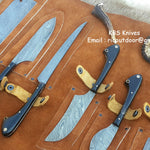 Custom Damascus Steel Hunting Knives Set – Buffalo Horn Handles