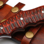 Custom Handcrafted Damascus Steel Tanto Tracker Knife - 11.5" Exotic Color Wood Handle with Horizontal Leather Sheath | Survival, Camping, Tactical | KBS Knives