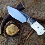 Custom Handmade 1095 Forged Steel Deer Skinning Knife - 8.5 Inch Buffalo Horn & Bone Handle, Leather Sheath - Premium Hunting Knife by KBS Knives