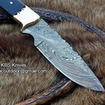 Custom Handmade 9-Inch Damascus Fixed-Blade Hunting Knife with Buffalo Horn Handle | KBS Knives Store