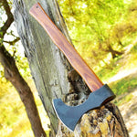 Crafted from high-carbon steel, this Viking tomahawk axe is designed to be durable and reliable. The acid-washed finish adds a unique touch, giving the axe an edgy and rustic appearance. The axe head is sharp and sturdy, with a blade perfect for chopping wood, clearing brush, or any other outdoor task.