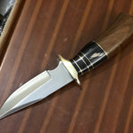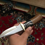 Experience precision and elegance with our Skinning Knife, expertly crafted for hunters and outdoor enthusiasts. This custom handmade knife boasts a 3.75-inch full tang blade made from high-quality D2 steel, providing exceptional edge retention and durability. The overall length of 7.5 inches makes it perfectly balanced for skinning tasks. Its stunning handle is crafted from a combination of rosewood, buffalo horn, and a polished brass bolster, ensuring both comfort and style. Each knife is accompanied by a robust leather sheath for secure storage and transport, making it a must-have tool for any hunting kit.