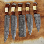 Custom Handmade Damascus Cooking Knife Set - 5 Pieces